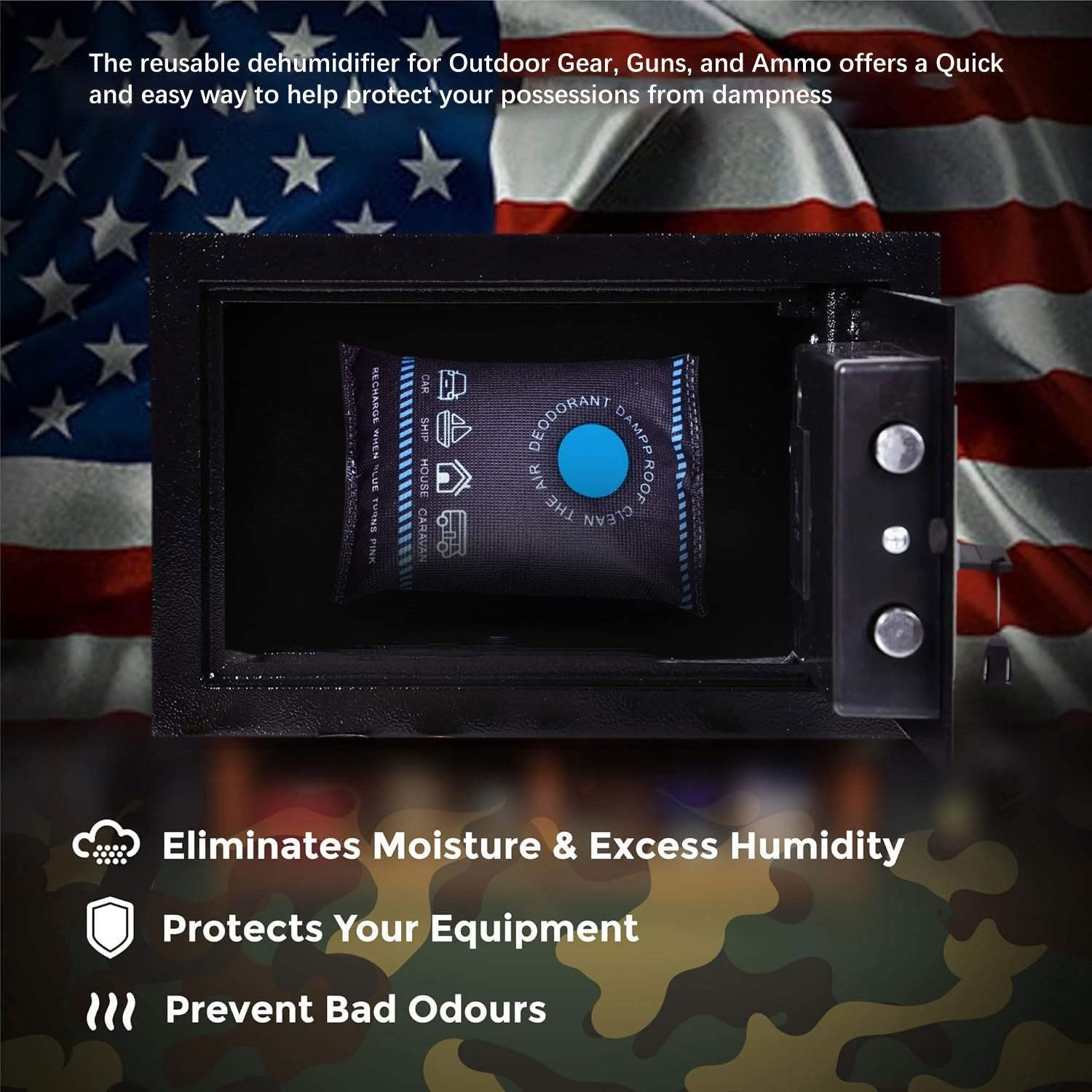 PROTECT YOUR BELONGINGS: Protect your home effectively with our advanced moisture absorbers. We engineer dehumidifier bags to be highly durable, designed to help safeguard your sensitive valuables. Experienced hunters and shooters understand the importance of maintaining their firearms and gear with great care. Moisture control is a key factor in keeping equipment in optimal condition, both during outdoor use and in storage. Our reusable dehumidifier offers a quick and easy way to help protect your possessions from dampness.